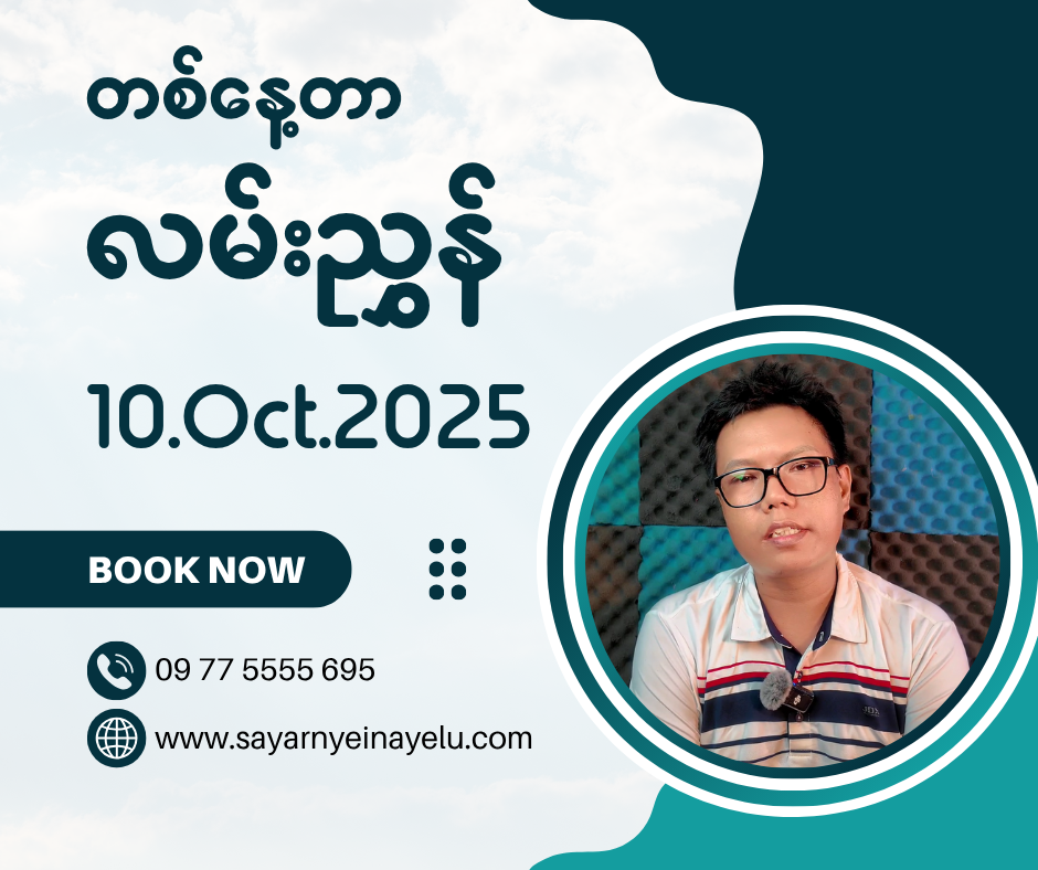 ဒါအပြင်ဆရာငြိမ်းအေးလူနှင့်တိုက်ရိုက်📞ဖုန်းခေါ်ဆိုပြီး ဗေဒင်မေးချင်တယ်ဆိုရင်…အပတ်စဥ် တနင်္လာနေ့၊အင်္ဂါနေ့၊ ဗုဒ္ဓဟူးနေ့ရောက်တိုင်း ညနေ (၆) နာရီကနေ (၈) နာရီအတွင်းဖုန်းနံပါတ် (7777) ကို Atomဖုန်းနံပါတ်များနှင့် ဖုန်းခေါ်ဆိုပြီး မေးမြန်းနိုင်ပါတယ် ခင်ဗျာ… ။ ( တစ်မိနစ်လျှင် ၅၂၅ ကျပ် ၊ ဉာဏ်ပူဇော်ခပါပြီး ကျသင့်ပါမယ်)
