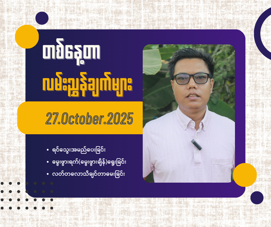 ခရစ်နှစ် ၂၀၂၅ခုနှစ်၊ အောက်တိုဘာလ (၂၇) ရက်နေ့လဲ ဖြစ်ပါတယ်။