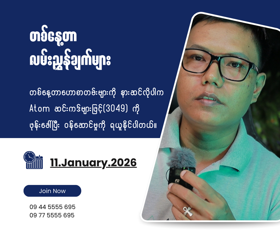 ATOM ဆင်းကဒ်များဖြင့် (3049) ကို ဖုန်းခေါ်ဆိုပြီး နားဆင်နိုင်ပါတယ်…။ ( တစ်ပတ်လျှင် ၄၅၀ ကျပ်သာကျသင့် မှာဖြစ်ပါတယ်။)
