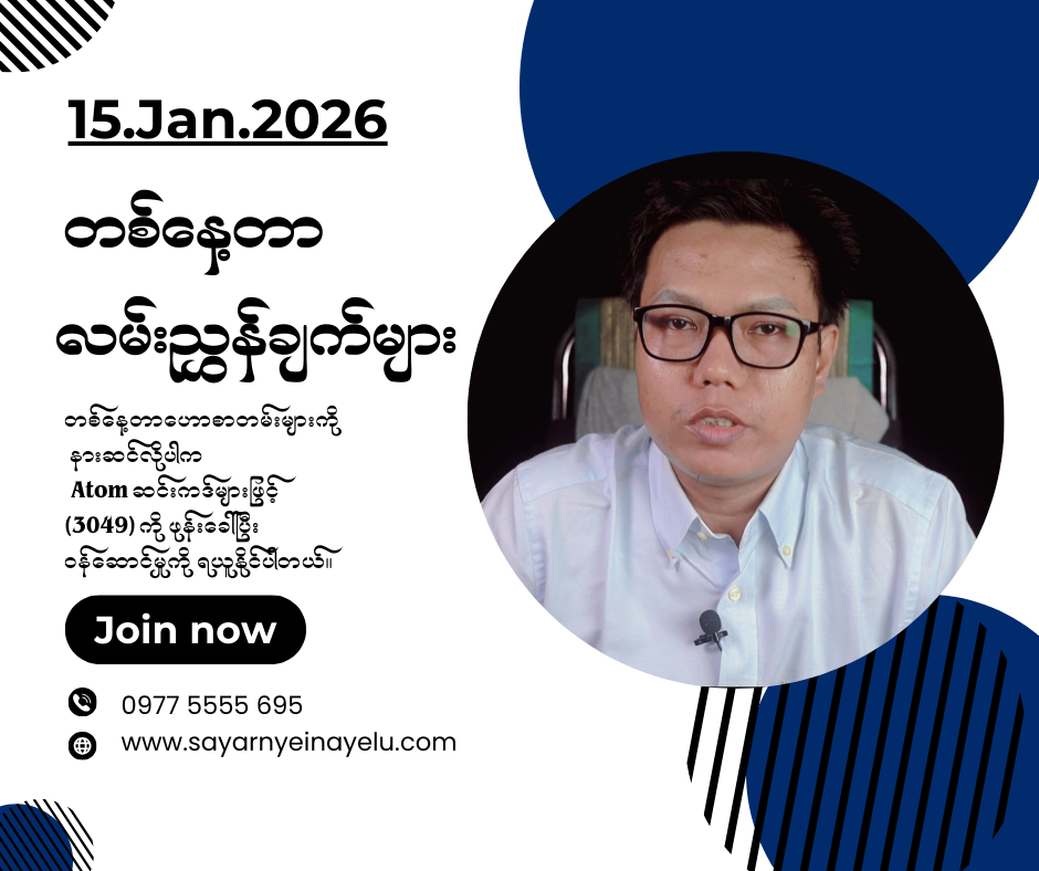 ATOM ဆင်းကဒ်များဖြင့် (3049) ကို ဖုန်းခေါ်ဆိုပြီး နားဆင်နိုင်ပါတယ်…။ ( တစ်ပတ်လျှင် ၄၅၀ ကျပ်သာကျသင့် မှာဖြစ်ပါတယ်။)