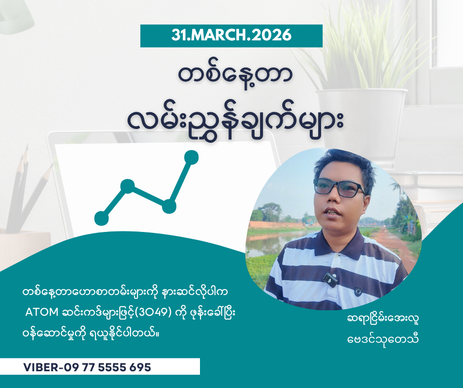 ATOM ဆင်းကဒ်များဖြင့် (3049) ကို ဖုန်းခေါ်ဆိုပြီး နားဆင်နိုင်ပါတယ်…။ ( တစ်ပတ်လျှင် ၄၅၀ ကျပ်သာကျသင့် မှာဖြစ်ပါတယ်။)