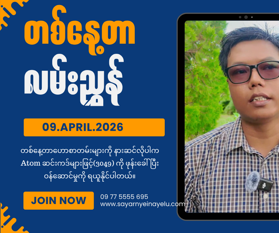 ATOM ဆင်းကဒ်များဖြင့် (3049) ကို ဖုန်းခေါ်ဆိုပြီး နားဆင်နိုင်ပါတယ်…။ ( တစ်ပတ်လျှင် ၄၅၀ ကျပ်သာကျသင့် မှာဖြစ်ပါတယ်။)