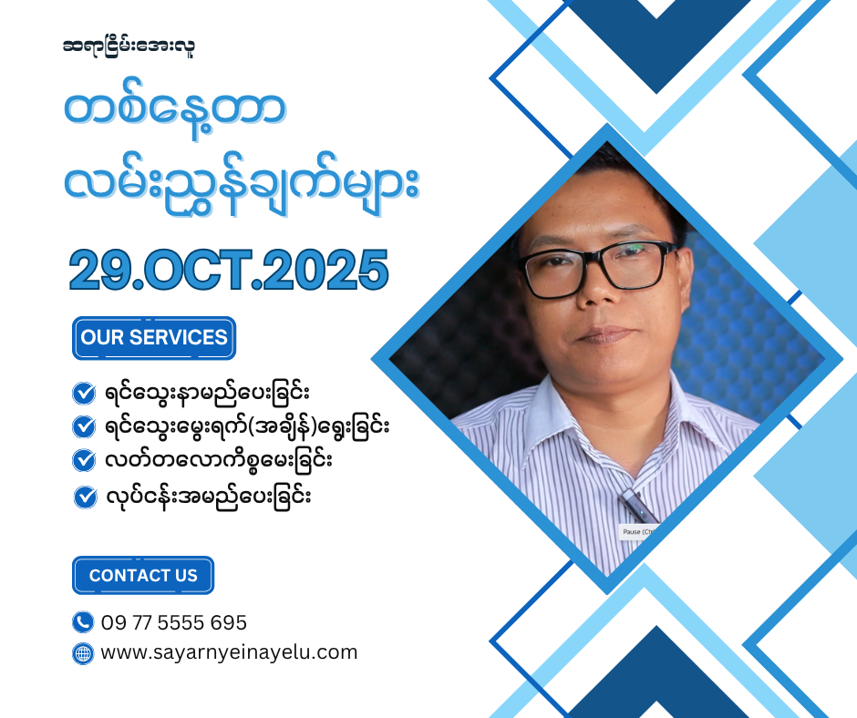 ခရစ်နှစ် ၂၀၂၅ခုနှစ်၊ အောက်တိုဘာလ (၂၉) ရက်နေ့လဲ ဖြစ်ပါတယ်။