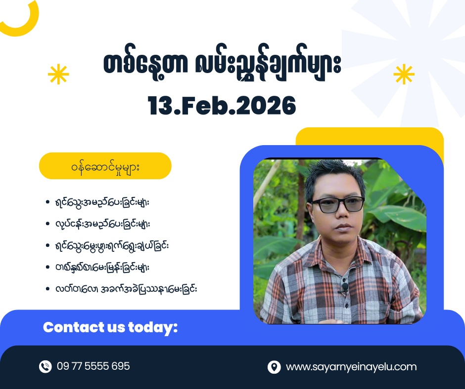 19. Feb.2026 တစ်နေ့တာလမ်းညွှန်ချက်များနှင့် ဆောင်ရန်ရှောင်ရန် သိစရာများ