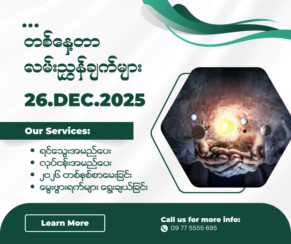 26. Dec.2025 တစ်နေ့တာလမ်းညွှန်ချက်များနှင့် ဆောင်ရန်ရှောင်ရန် သိစရာများ
