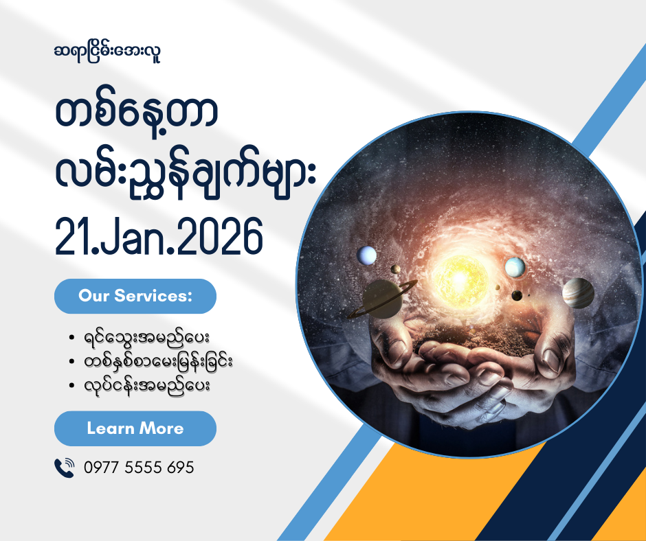 အောင်မဟာ-မင်္ဂလာအခါပေး နေ့စဉ် ဗေဒင်ဒိုင်ယာရီ 2026